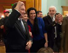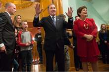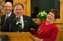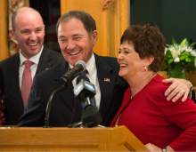 Herbert joins Democrat Cal Rampton and Republican Mike Leavitt to win election as Utah governor three times.