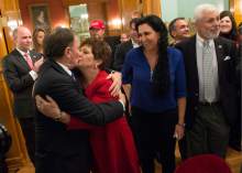 The Associated Press called the race for Herbert just after 8 p.m., even though voters were still in line waiting to cast ballots in the race nearly three hours later. The Brigham Young University exit poll also showed Herbert with an overwhelming lead against Democrat Mike Weinholtz.
