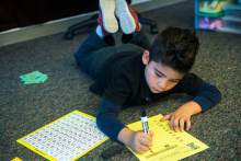 Each day students place a stick labeled with their name in one of the two cups, which allows Paulson to check in privately with students who are distressed.
