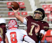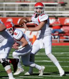 American Fork quarterback Bronson Barron looks for a receiver during the 5A semifinal foot
