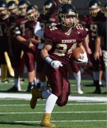 The Lone Peak Knight takes time out to check his phone during the 5A semifinal football ga
