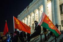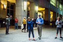 People watched the demonstrators from their apartment windows. Some joined the chants. Some flipped their middle fingers at the protesters.