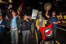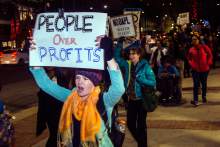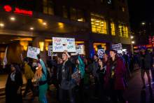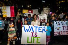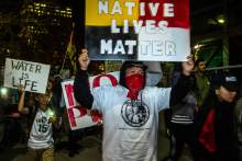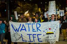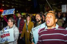 Dakota Access Pipeline protestors march in solidarity on State Street during the 'Standing
