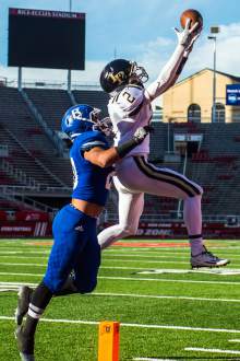 Lone Peak (12-2) lost for the second consecutive season in the state championship, despite leading 10-0 on a 25-yard Dakota Hansen-Tyler MacPherson hook-up and a 35-yard field goal by Thomas Rossi. The Knights also out-gained Bingham in total offensive yards, 303-267, and nearly held Bingham scoreless in the first half for the first time this season.