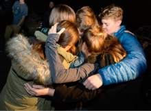 Friends embrace as they attend a vigil at Draper City Park on Sunday evening, Nov. 20, 2016, in remembrance of teens Lexie Fenton and Ethan Fraga, both 16, who were killed in a single-car accident in Draper Saturday night.