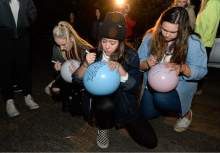 Friends and family gather for a vigil at Draper City Park on Sunday evening, Nov. 20, 2016, in remembrance of teens Lexie Fenton and Ethan Fraga, both 16, who were killed in a car accident in Draper Saturday night. Balloons were passed around for people to write a note before releasing them into the cloud covered sky.