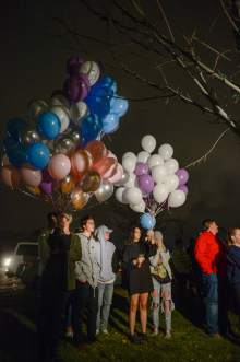Releasing inscribed balloons, friends and family gather for a vigil at Draper City Park