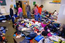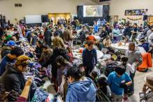 Talking to people like Delvillar and Turnbow is exactly why Gary Fischer, 79, decided to volunteer Thursday. Around lunchtime, Fischer was helping people dig through clothing to find the appropriate size, as well as sweeping up as hundreds marched in and out of the church for their meal.