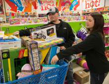 Once inside, the Ropers beelined for a Batman robot, scoring the last one. The two pushed around two fully loaded carts while holding their 11-month-old daughter, Aryana.
