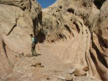On a recent Tuesday, Mohsen noted that vehicles were spilling out of the parking area for the Little Wild Horse trailhead, which serves the swell's most popular hike. On busy days, the famed slot canyon becomes so clogged with hikers that they can't get around each other as they negotiate tight passages.