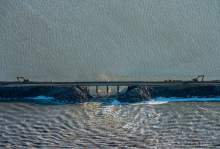 A breach in the Union Pacific causeway that separates the the north and the south ends of the Great Salt Lake Friday December 2, 2016.