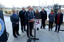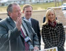 Taylorsville Mayor Larry Johnson, left, joins Salt Lake County Mayor Ben McAdams, County Cou