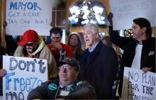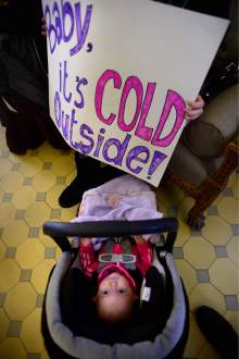 Former Salt Lake City Mayor Rocky Anderson gathered about a dozen homeless and recently homeless residents outside Mayor Jackie Biskupski's office Friday, demanding that the mayor act to provide emergency shelter and laying the blame at her feet if another person dies from the cold.