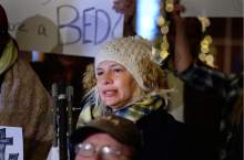 Brigitte Romo Leroux has been staying in the shelter but last night visited her friend, who wasn't able to get space in the shelter and had to stay out in the cold.