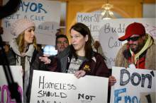 That point was driven home Friday when two of the homeless men Anderson had brought to Biskupski's office interrupted his plea for shelters saying they don't want to go to the shelter.