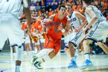 Brighton's Osa Masina (52) tries to run past Layton's Steel Roberts (5) and Layton's Cody Edwards (32) during the 5A championship game at the Dee Events Center Saturday February 28, 2015. Brighton is winning the game 27-20 at halftime.