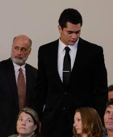 Former Brighton High football star Osa Masina makes his first appearance in court, at the Matheson Courthouse in Salt Lake City, Friday, September 30, 2016. Masina has been charged with three first-degree felony counts stemming from a July sexual assault in Cottonwood Heights.