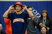 Brighton's five-star linebacker Osa Masina, regarded as the top-rated college prospect coming out of Utah, picks up the USC hat as he reveals his school of choice to attend and play during a school assembly held in his honor and other student athletes receiving school scholarships.