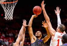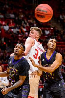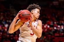 Utah Utes guard Devon Daniels (3) pulls down a rebound as University of Utah hosts Prairie