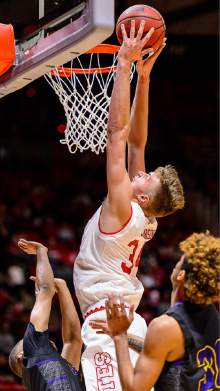 Utah Utes forward David Collette (13) as University of Utah hosts Prairie View A&M, NCAA basketball at the Huntsman Center in Salt Lake City, Saturday December 17, 2016.