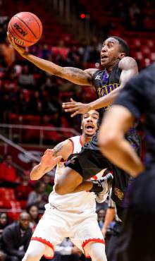 Prairie View A&M Panthers guard Avery Lomax (2) shoots as University of Utah hosts Prairie View A&M, NCAA basketball at the Huntsman Center in Salt Lake City, Saturday December 17, 2016.