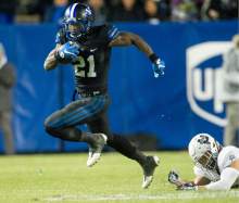 Injured senior quarterback Taysom Hill was named BYU's Most Inspirational Player at the team luncheon on the USS Midway on Tuesday. Linebacker D.J. May, whose season ended in the New Mexico game due to a torn pectoral muscle, received the same honor presented by the Poinsettia Bowl folks for Wyoming. … The Cougars are 13-20-1 all-time in bowl games, and have played 30 different opponents in 34 bowl games. They've played Ohio State three times, Oklahoma State twice, UCLA twice and the other 27 opponents just once. … Despite their losing record in bowl games, the Cougars have outgained opponents 13,184 yards to 12,178.