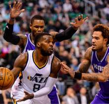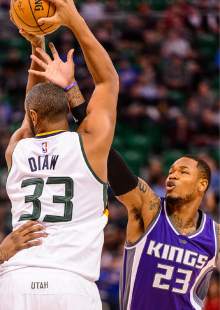 Back in front of their home crowd, the Jazz looked like they were well on their way to an easy win over the Kings (12-17). Midway through the second quarter, Kings center DeMarcus Cousins went up for a dunk only to be met at the rim by Utah's Rudy Robert. The block ignited a fast break and a 3-point bucket by Gordon Hayward on the other end, pushing the Jazz lead to 20.