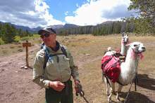 USFS ranger Steve Hartnett and his llamas pass Elkhorn Crossing, about 5.5 miles along He