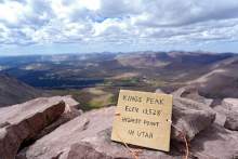 A wooden plank on top of Kings Peak. Tuesday, Sept. 6, 2016.