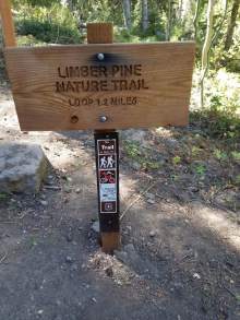 A sign marks the beginning of the Limber Pine Nature Trail.