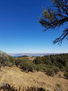 A view of Bear Lake can be seen in the distance as hikers meander the Limber Pine Nature Trail.
