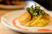 This is Salt Lake's hottest new Greek restaurant and for good reason. For one, chef and owner Manoli Katsanevas has perfected the art of seared scallops, found on the restaurant's meze menu as htenia ($12). The meaty mollusks are presented sitting atop a tangy yellow split-pea purée dressed with a flourish of citrus-ouzo vinaigrette and fresh micro greens for a palate-pleasing surprise. HLK