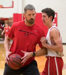 Yet here he is on a weekday morning during the school's holiday break, making detailed suggestions to players at every position. He's talking constantly during the two-hour session and channeling the late Rick Majerus minus the Wisconsin accent, the colorful language and the occasionally graphic illustrations that framed the Ute coach's methods.