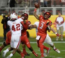 Utah Utes quarterback Troy Williams fires a pass downfield during the Foster Farms Bowl at