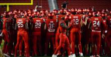 The Utah Utes huddle up prior to the start of the Foster Farms Bowl at Levi's Stadium in Santa Clara California Wednesday December 28, 2016.