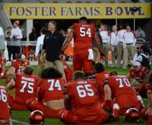 The Utah Utes huddle up prior to the start of the Foster Farms Bowl at Levi's Stadium in Sa