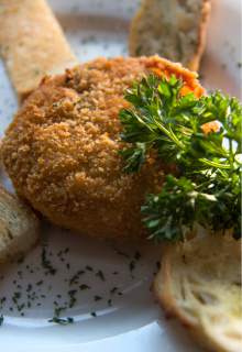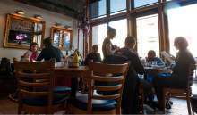 A Caesar salad ($12 plus $3 extra for chicken) was less adventurous but still a respectable rendition of that classic. While the spinach and artichoke dip ($12), stuffed somehow inside a single onion ring that was battered and fried, tasted mostly of garlic and cream cheese, I predict it will be a hit with ravenous skiers.