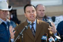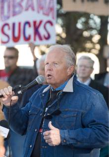 As about 200 people congregated on the town's closed-off Main Street, San Juan County Commissioner Phil Lyman was joined near the county building steps by Utah Lt. Gov. Spencer Cox, U.S. Rep. Rob Bishop, state Rep. Mike Noel and state House Speaker Greg Hughes, among others.