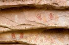 Ancestral Puebloans once stood atop this structure and pressed painted hands against the inverted sandstone wall, leaving prints in red, yellow and white.