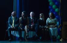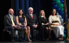 l-r Millcreek City's first mayor Jeff Silvestrini and city council members; Sylvia Catten, Dwight Marchant, Cheri Jackson and Bev Uipi recited their oaths of office at a ceremony kicking off a celebration of the community becoming the 17th city in Salt Lake County, Tuesday, January 4, 2017 at Wasatch Junior High.