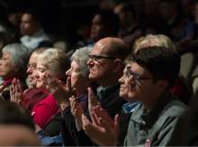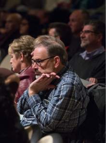 Millcreek City residents watch as their first mayor Jeff Silvestrini and city council members; Sylvia Catten, Dwight Marchant, Cheri Jackson and Bev Uipi recited their oaths of office at a ceremony kicking off a celebration of the community becoming the 17th city in Salt Lake County, Tuesday, January 4, 2017 at Wasatch Junior High.