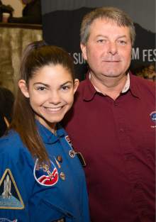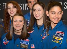 Alyssa Carson, 15, of Baton Rouge, La., wore her blue space jumpsuit, which was decorated with patches from various science programs. Alyssa said she has aspired to be an astronaut since she was 3, inspired by the TV cartoon "The Backyardigans."