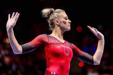 Michigan had bigger mistakes than the Utes, suffering two breaks on the uneven bars in the opening rotation. The Wolverines weren't able to threaten after that, thanks to Utah's 49.275 on the uneven bars put it ahead 98.375-97.425 at the halfway mark.