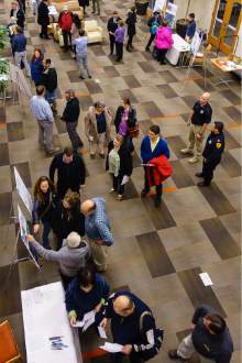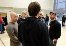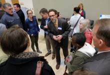 A crowd of people surrounded Deputy Chief of Staff David Litvack and quizzed him on other site finalists' failings, or whether the city was no longer willing to hear feedback about the Sugar House site.