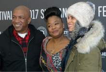 "Roxanne Roxanne" co-producer Ralph McDaniels poses with Roxanne Shante' and co-producer Mimi Valdes at the premiere Sunday, Jan. 22, at the 2017 Sundance Film Festival in Park City. "Roxanne Roxanne," is based on hip-hop legend Roxanne Shanté, played by Chanté Adams, who went from hustling the streets at 14 to becoming the most feared battle emcee in the early-'80s New York rap scene.
