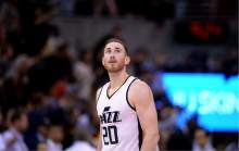 Utah Jazz forward Gordon Hayward (20) looks up at the scoreboard as he walks off the court