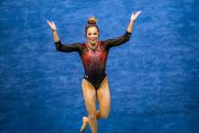 Utah's Mykayla Skinner competes on the floor during the gymnastics meet against Brigham Yo