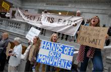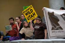 Those divisions were apparent Tuesday morning outside the House chambers on Capitol Hill as lawmakers debated the resolution and a companion bill aimed at trimming the 20-year-old Grand Staircase-Escalante National Monument. A few dozen people chanted "public lands in public hands" and held signs including, "Use your Bears Ears and listen to the people."