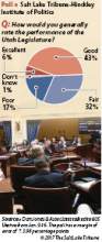 Before the Legislature begins wrestling with its array of complex, sometimes controversial issues, members received mixed reviews in a new Salt Lake Tribune-Hinckley Institute of Politics poll. It found 49 percent of voters approve of lawmakers' performance, and 49 percent disapprove. As far as legislative popularity generally goes in such polling, that's not bad.