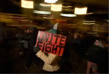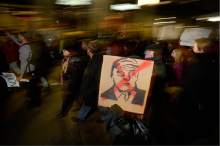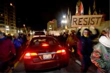 Hands shot skyward. Victimized or not, this was a crowd comprised of mostly young, liberal Utahns afraid of what Trump might do as president and angry that the political establishment isn't listening to them. Protesters gathered in front of the Wallace Bennett Federal Building, many carrying signs and raising their voices in opposition to Trump's stances on immigration, military, LGBTQ issues, education and the environment. As the group moved through the city chanting phrases like "Education not deportation" and "Black Lives Matter," it stopped traffic and drew onlookers from City Creek Center. Every once in a while, passersby would yell at the crowd out the windows of their cars. "You need something better to do with your time," one said. But protesters pushed onward as Salt Lake City police dotted the sidewalks on either side of their route toward the state Capitol, a scene reminiscent to the protests against Trump shortly after his surprise victory in November.
